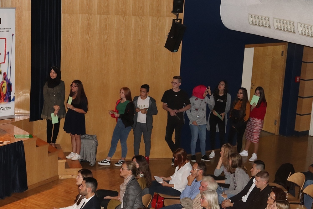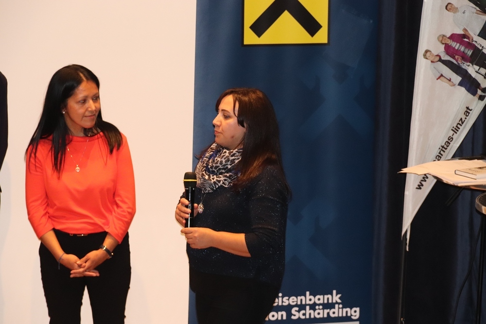 Dass Integration sehr gut gelingen kann, zeigten auch einige „Neu-Schärdinger“: Eine gebürtige Ägypterin, eine Frau aus Paraguay, ein Afghane und eine Österreicherin mit türkischen Wurzeln erzählten von ihren Highlights und Hoppalas auf dem Weg zur Integration. Die 6. Klasse des VokalBORG Schärding würzte den Abend mit einigen musikalischen Leckerbissen.