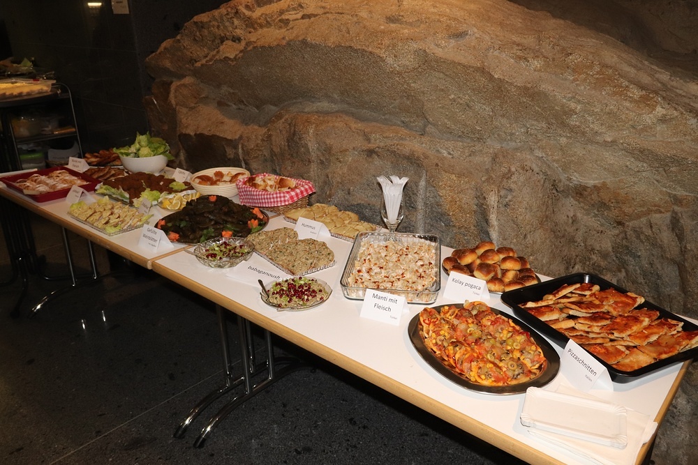Auch der gesamte Abend war eine wohlschmeckende Mischung: Der Grazer Autor Omar Khir Alanam erzählte berührend von seinen Elebnissen im Bürgerkrieg und auf der Flucht aus Syrien. „Morgen wird schöner“, dieser Satz, gehört bei einem Begräbnis, begleitete ihn auf seiner zwei Jahre langen Flucht, bis er 2014 in Graz landete. Er las aus seinem Buch „Danke. Wie Österreich meine Heimat wurde“ und gab Kostproben seiner Poetry Slam Kunst zum Besten. Feinsinnig bringt er seine Schlussfolgerung aus dem Krieg auf den Punkt: „Die Gewalt, die du heute ausübst, verdunkelt dein Morgen.“ Vom Zwang zur Gewalt ist er geflohen.